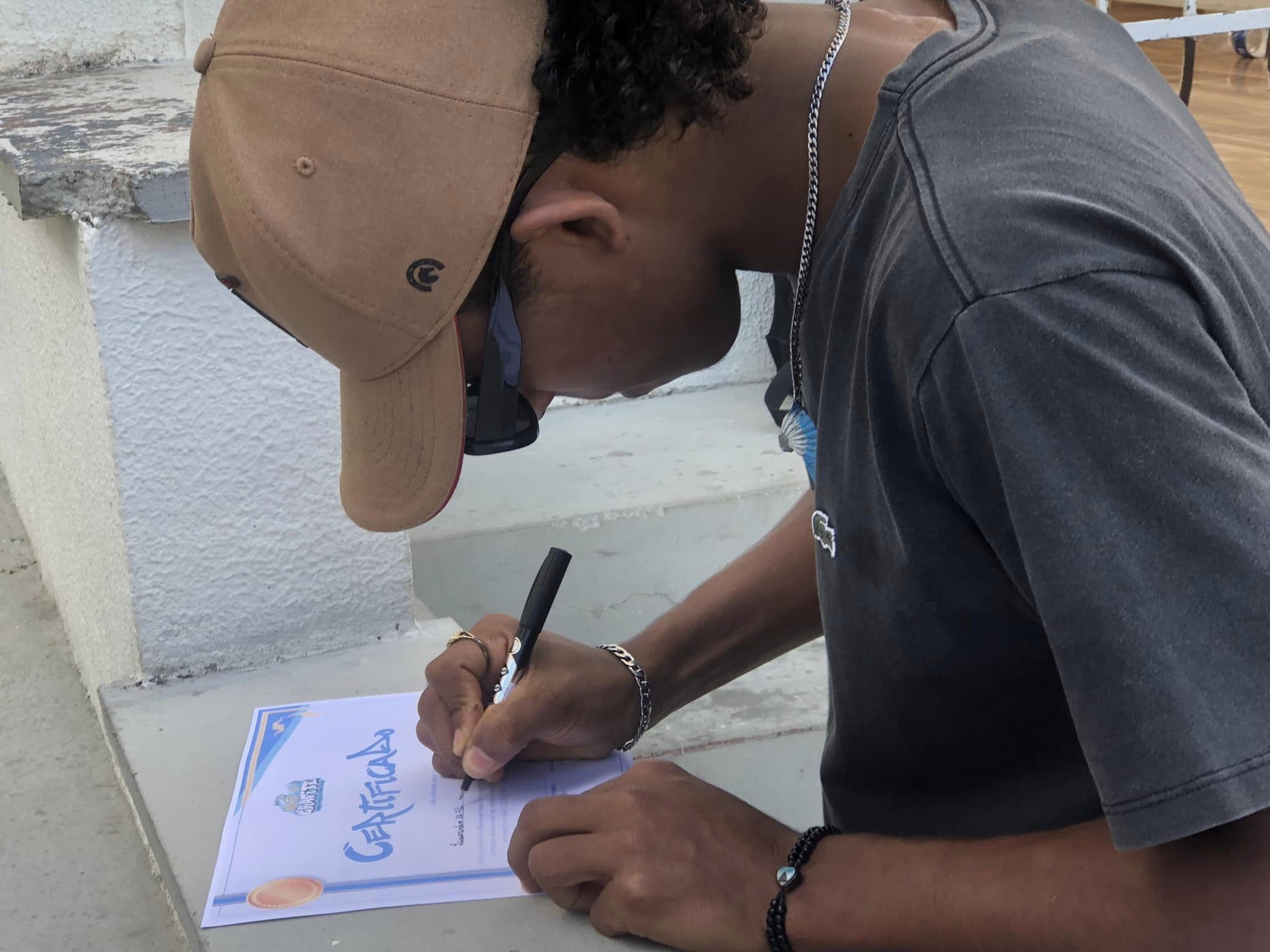 O Segundo encontro produtivo do projeto Arte e Graffiti - Expressões Poéticas na cidade Cipó /Ba. As atividades foram realizadas nas datas 25 e 26 de maio de 2024. A primeira atividade realizada no sábado, foi a produção de molde vazado com o reaproveitado do papelão e o uso da tesoura e estilete parar cortar e vazar imagens a serem produzidas em série com a aplicação do spray ou outra técnica. logo depois a intervenção artística no muro externo do Colégio Estadual Tempo Integral Águas Termais de Cipó. A tarde, às 14h, a atividade foi realizada no Quilombo Cipó, mesmo com presença da sagrada chuva a produção foi realizada com a contemplação dos transeuntes na estrada. Os muros da comunidade quilombola foram ressignificados, com a produção de imagens iconográficas e mensagens inspiradas na identidade afro-brasileira. A noite, às 19:30, os jovens produziram a linguagem stikers (arte adesivo) na arte na praça da cidade e no domingo pela manhã, mais uma intervenção póetica e didática no muro em frente a praça. E no final, a entrega dos certificados, a esperada customização de camisetas, skate e avaliação interativa com os jovens cursistas em frente a Câmara Municipal de Cipó.